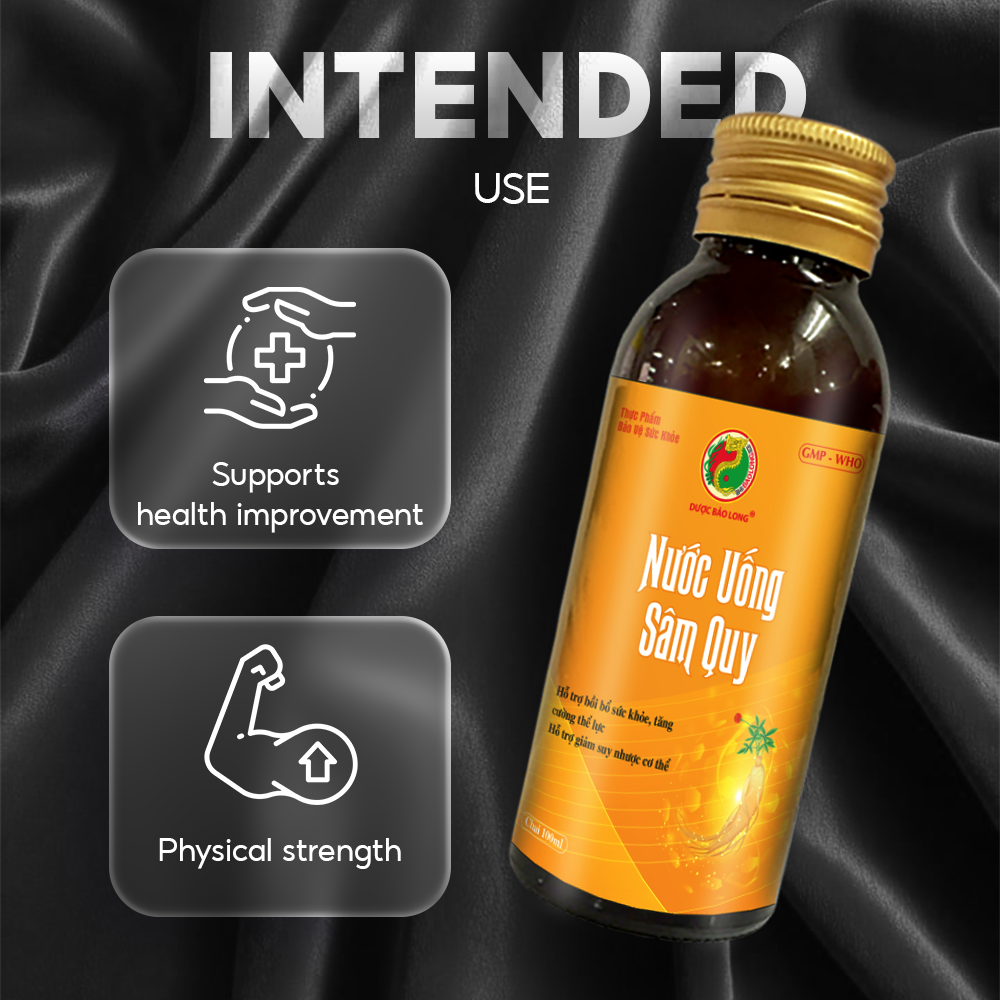 Bao Long Sam Quy Water – The perfect blend of two precious herbs, Ginseng and Dang Gui, combined with a delicious and refreshing taste, will be a natural source of energy to help you: