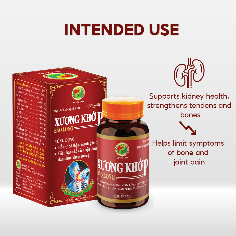 Don’t let joint pain hold you back! Let Xuong Khop – Bao Long from Bao Long Southeast Pharmaceutical help you break free from pain, support cartilage regeneration, nourish tendons and bones, and allow you to fully enjoy every step you take with freedom. Make each day full of energy and joy!