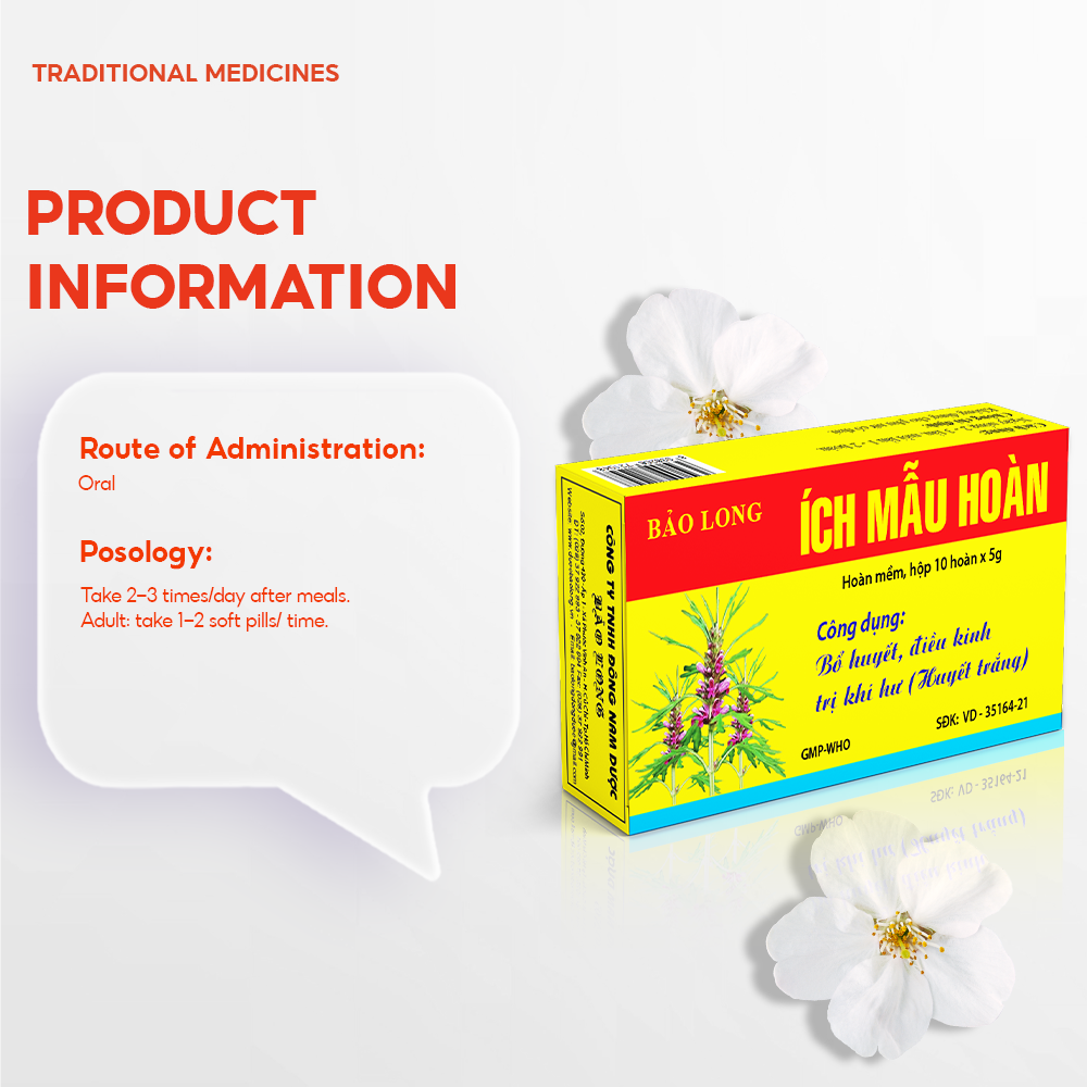 Les comprimés Ich Mau Hoan sont élaborés à partir d’herbes de grande valeur thérapeutique, étudiées et testées pour garantir efficacité et sécurité.