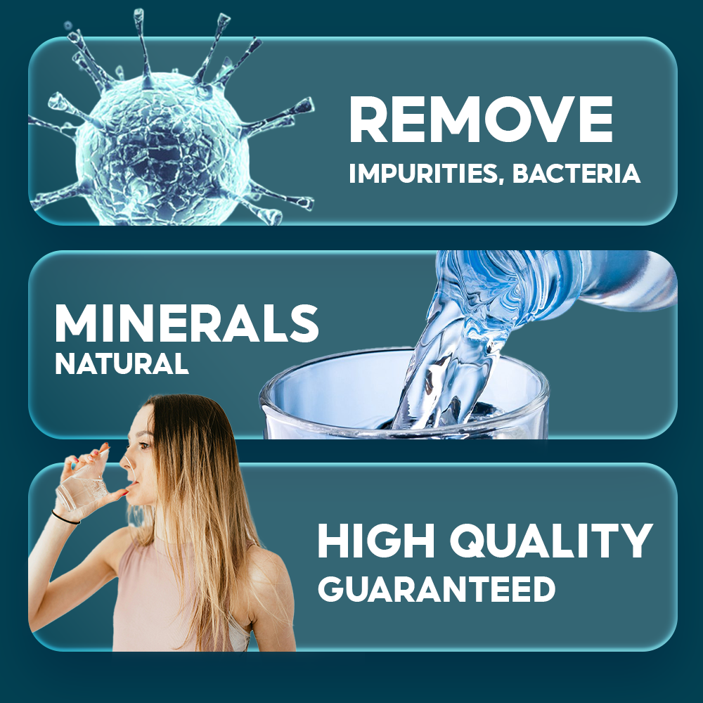Élimine totalement les impuretés, bactéries, métaux lourds, substances organiques et autres polluants présents dans l’eau.