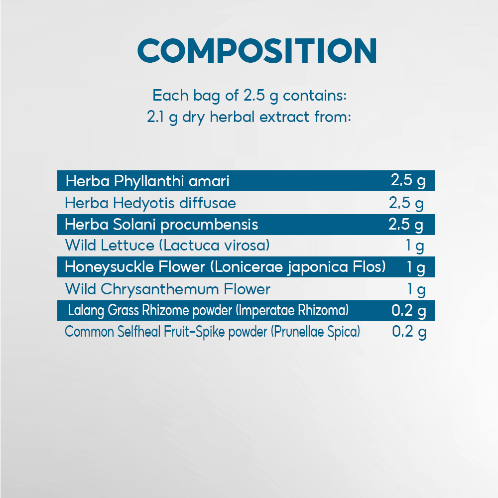 La combinaison parfaite de plantes précieuses telles que Herba Phyllanthi amari, Herba Hedyotis diffusae, Herba Solani procumbensis, Lonicera japonica, etc., aide à renforcer la fonction hépatique, à soutenir le processus de détoxification et à protéger les cellules du foie contre les agents nocifs.