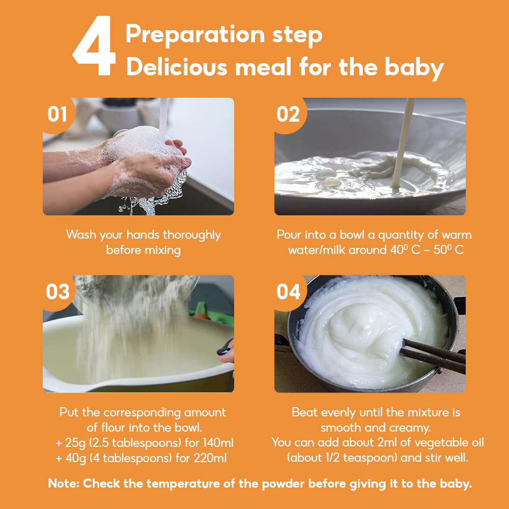 Step 3: Pour the required amount of warm water into a bowl, then gradually add the powder to the bowl according to the following table: