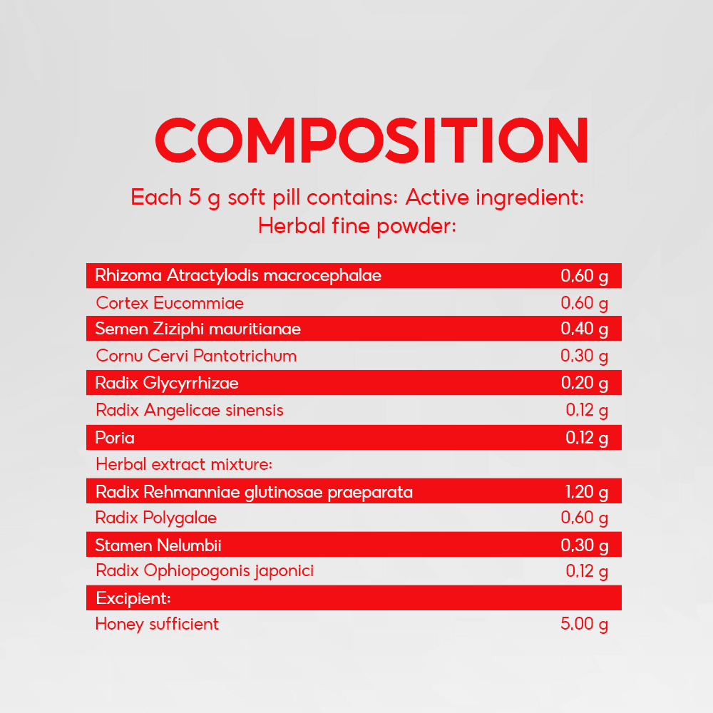 Composition: Each 5g soft pill contains: