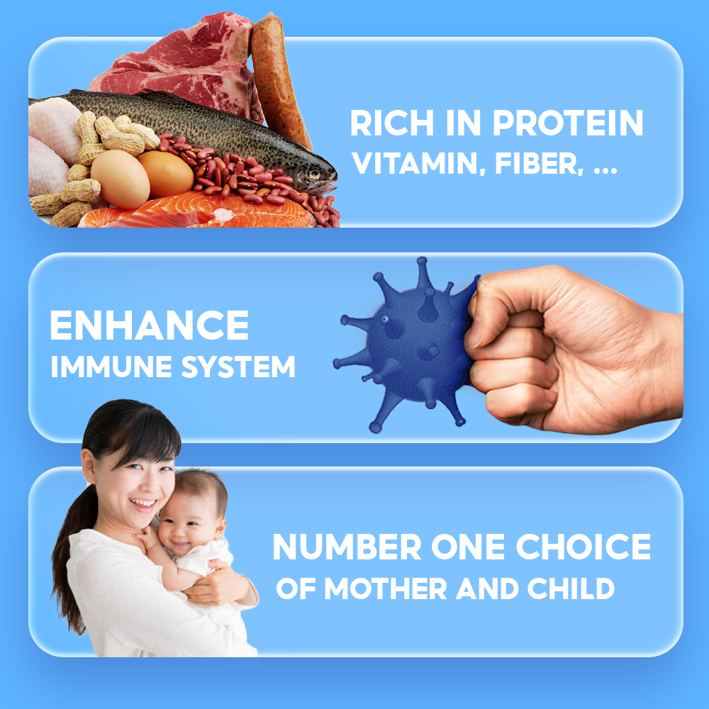 Humababy Weaning Food, primarily made with rice, milk, and oats, is rich in fiber, vitamins, and minerals. This product provides complete energy for your baby’s daily activities. With 10 vitamins and 12 minerals, including vitamins A, B, iron, and calcium, it strengthens the immune system.