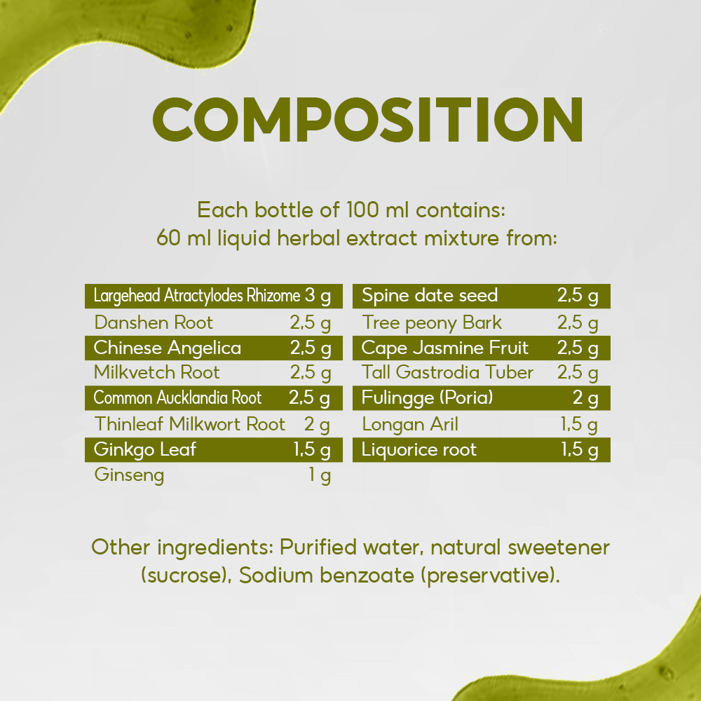 Intended use: Supports eating well and sleeping well, helps improve health, and helps reduce fatigue