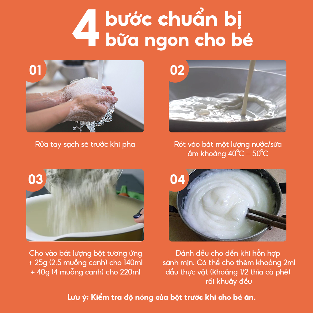 - Chỉ cần pha với nước ấm là có ngay bữa ăn thơm ngon, bổ dưỡng cho bé.