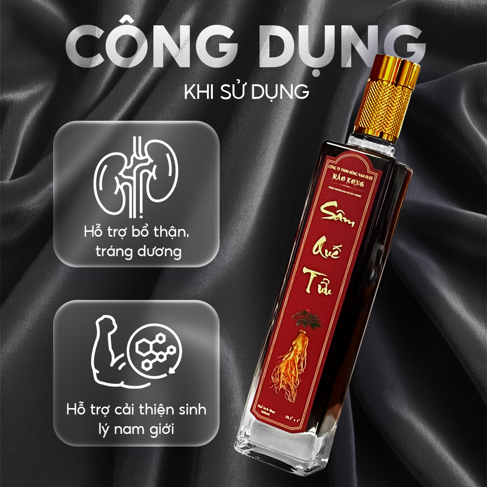 Hãy khám phá sức mạnh của thiên nhiên với SÂM QUẾ TỬU và cảm nhận sự thay đổi tích cực trong cơ thể bạn. Với mỗi ngụm SÂM QUẾ TỬU, bạn sẽ cảm nhận được sự ấm áp, thư giãn và sức sống dồi dào từ những thảo dược quý giá.