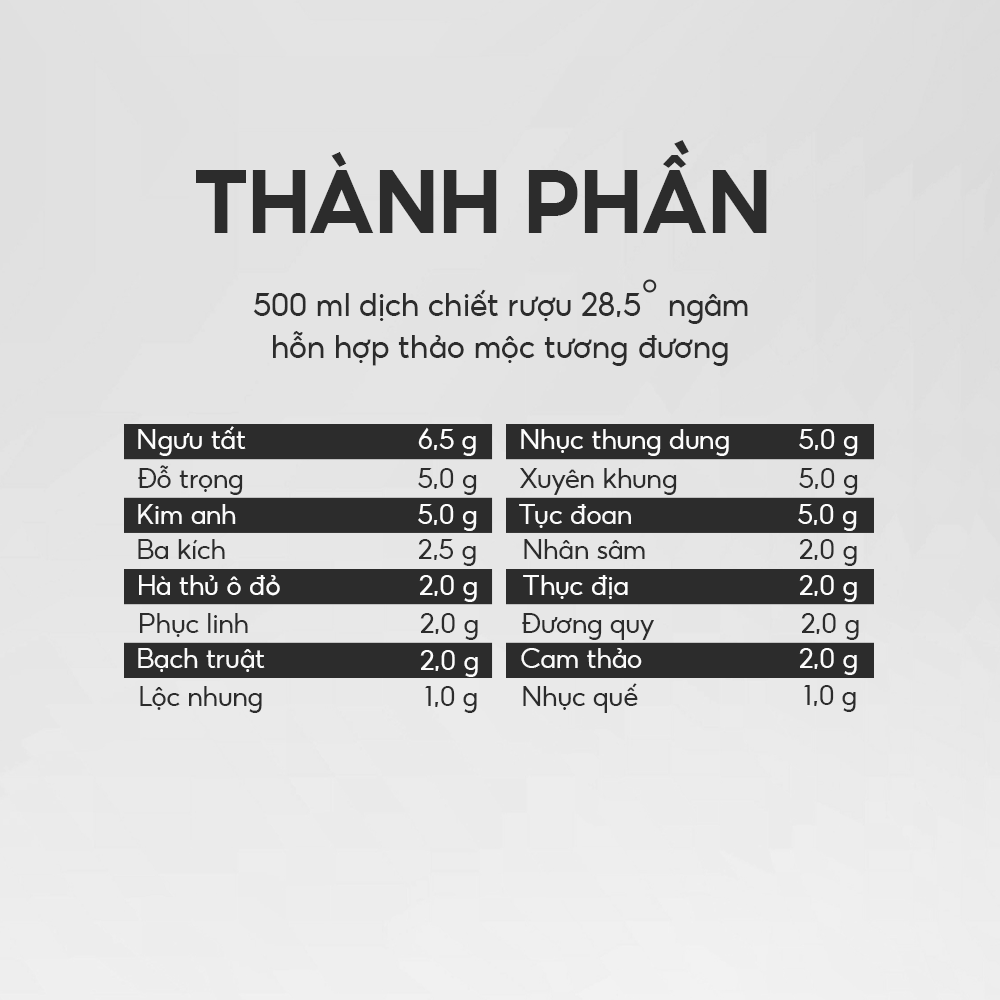 500ml dịch chiết rượu 28,5° ngâm hỗn hợp thảo mộc tương đương: