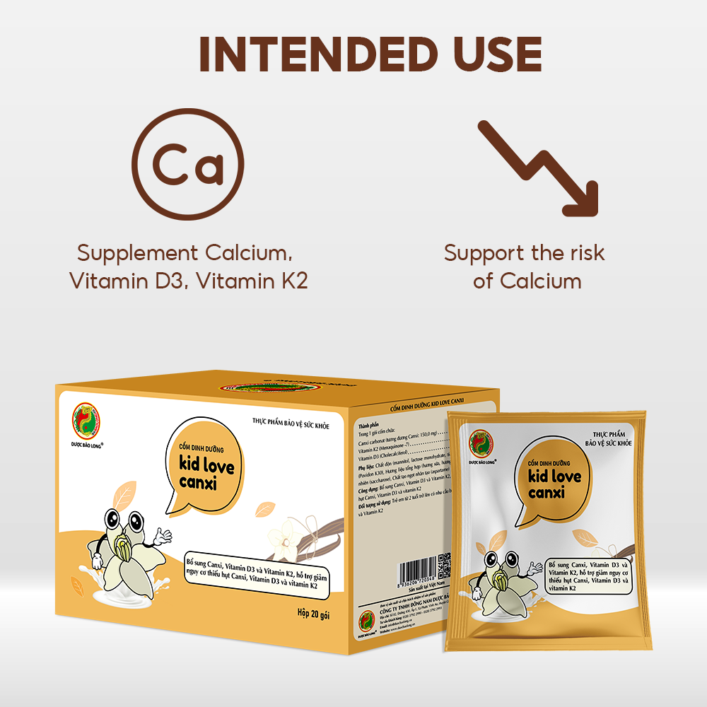 INDICATIONS: For children from 2 years of age and older who need to supplement Calcium, Vitamin D3 and Vitamin K2.