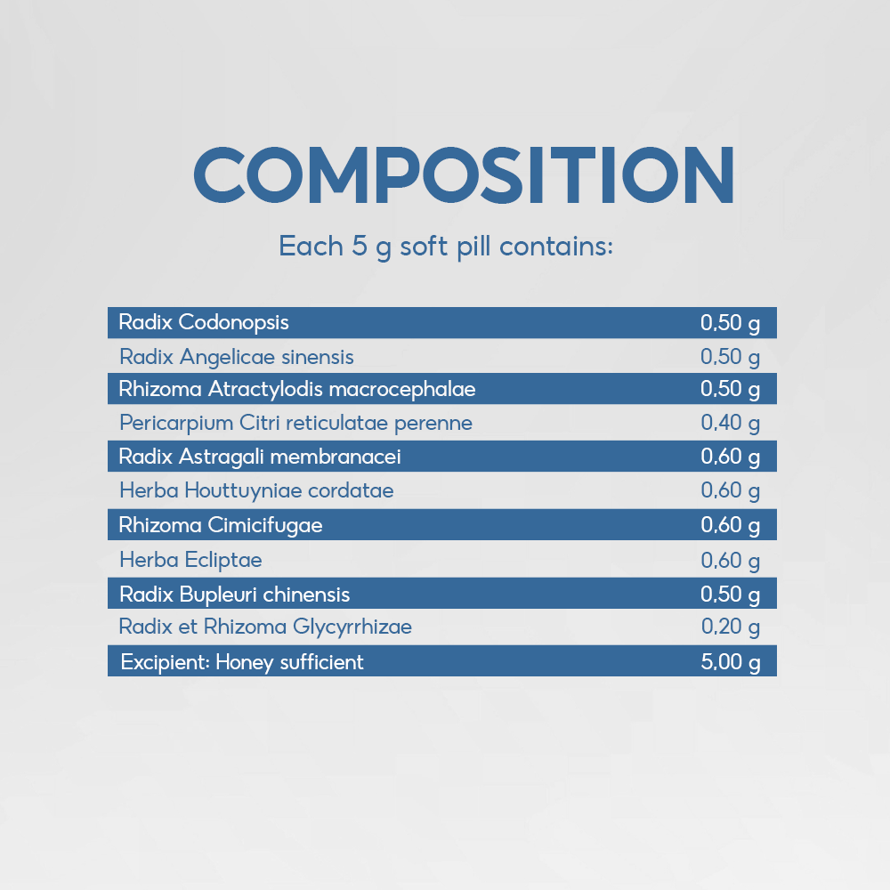 Warnings and Precautions: Do not exceed the prescribed dose or use concurrently with other medications. Avoid raw and cold foods.
